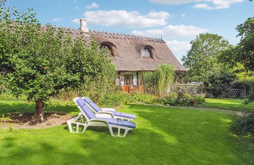 Look forward to a lovely vacation in this beautiful thatched half-timbered house just outside Nexø in the countryside. The vacation home is located on the first floor and offers some cozy rooms with some nice details, not least the attractive wooden ceilings. The bedroom with its fireplace is particularly atmospheric.
