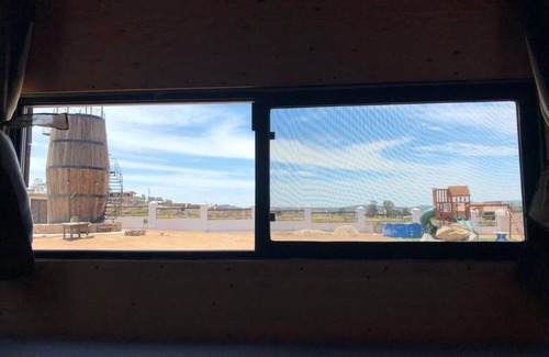 Nice RV with 1 bed and two sofa beds, 1 bathroom, a little kitchen, air conditioner, outside you can find another 2 bathrooms and a shower room, kids area, bicycles and ATVs for adults and kids (yo can rent the ATVs per hour or per day) , we have the perfect spot to enjoy the amazing sunrises & sunsets that Guadalupe Valley offers us.