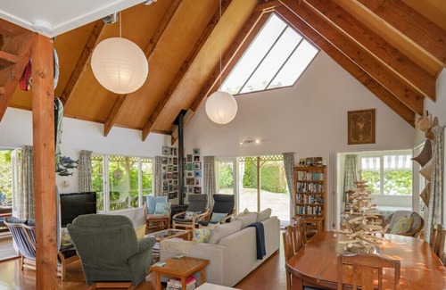 Stay here whatever the weather. In summer the indoor/outdoor living is perfect. A 10 seater Kwila dining table makes it easy for long summer dining; a cherished kiwi pastime! In winter the wood fire creates its own ambiance.