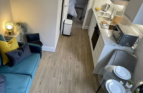 The kitchen's white, high gloss and contemporary finish, the comfy sofa bed and modern bathroom, make this apartment a perfect for professionals, families or a group of friends visiting Cambridge.
