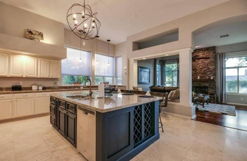 Spacious home that has been tastefully furnished and has all that you need to enjoy your Arizona getaway. Formal living area with dining for 8, sitting area, and grand piano. Huge kitchen with all you need to make meals at home and also features island with breakfast bar. Relax in the living room around the big screen tv and fireplace. Spacious bedrooms and new beds. Master bedroom has adjustable Tempur-Pedic mattress and luxurious master bath. Private backyard is one of the best features of the home. Relax on the patio and enjoy the Arizona sunsets in privacy and quiet. A great home for families looking to escape.