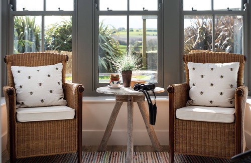 From the lounge, you enter the south-facing sun room with two comfortable occasional chairs and a table, this is a perfect spot for a bit of garden wildlife spotting with a set of handy binoculars provided. There is additional garden access from the sun room.
