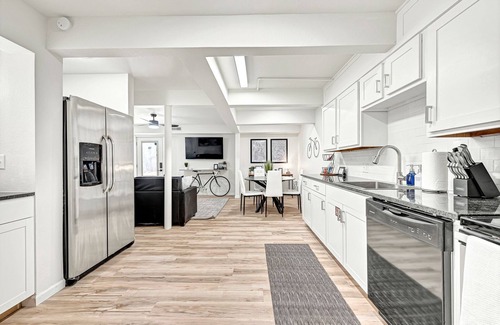 The living room has a comfy couch that easily pulls out into a queen sized bed (extra sheets and blankets in the closet) and Roku Smart TV ready for movie night.