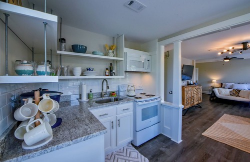 This adorable apartment is located just 1 mile from Bryant Denny Stadium and walkable to Downtown Tuscaloosa! The apartment has 1 king bed, a fold out futon (twin size), 1 full bath with a walk-in shower, and holds up to 3 guests. In the living room you can relax and watch tv or play board games with friends! The kitchen has all electric appliances and plenty of kitchen supplies, including a Keurig single cup coffee maker with starter supplies! The private bedroom comes equipped with a tv and sound machine. There is also a shared fire pit area, seating, and patio area for guests.