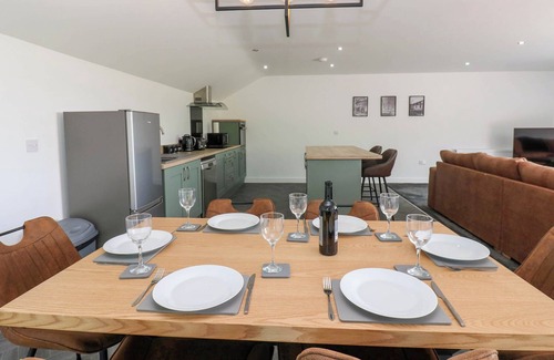 Oak Tree Cottage, a reverse-level cottage, consists of an open-plan living space with kitchen, dining area, and sitting area with Smart TV, balcony, corner sofa, dining seating, and a utility with washing machine and tumble dryer. The bedrooms consist of a ground-floor double with en-suite, a ground-floor double, and a ground-floor twin. There is a bathroom with a bath and a shower over. WiFi, fuel, power, bed linen, and towels are included in the rent. Outside, there is a non-enclosed garden with patio and furniture and ample off-road parking. One well-behaved pet is welcome. Sorry, no smoking. Have a special time that everyone will love at Oak Tree Cottage. Note: This property requires a Good Housekeeping Bond. Note: Entrance to the property is around the back. Note: Communal utilities room shared by all three properties.