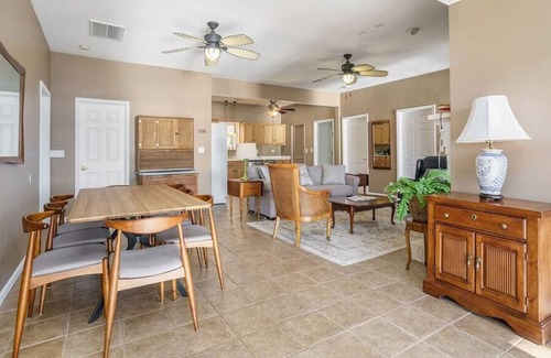 Enjoy your favorite beverage while relaxing on the 620 sf lake view porch, or frolic in the lake with your own private beach, dock and boat ramp. Lakefront just a few steps away, it doesn't get any better than this!