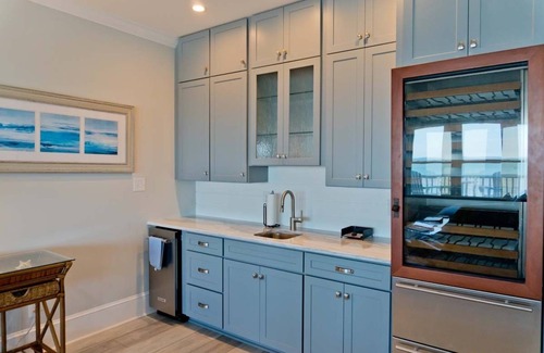 Amenities include: High-Speed Wireless Internet, 3 Flat Panel TVs; Wet Bar, Beverage Refrigerator; Interior Washer/Dryer; Fully Equipped Kitchen with Coffee Maker, Oven, Refrigerators with Attached Ice Maker, Stand-Alone Ice Maker, Microwave, and Dishwasher; Covered Balcony with Furniture.