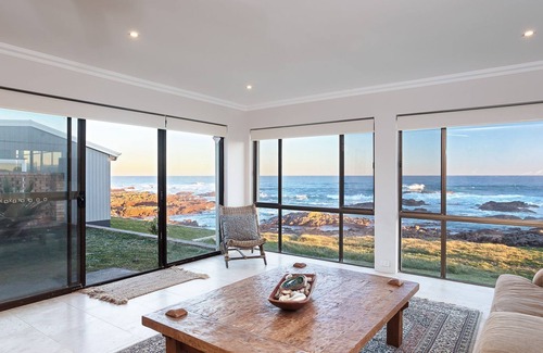 In winter the lounge room provides a cosy vantage point for whale watching.