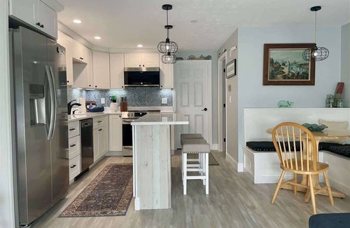 Freshly introduced as a short-term vacation haven, this 1-bedroom Ogunquit condo has been meticulously rejuvenated and revamped, now readily available for your bookings. Immerse yourself in a symphony of meticulous details, purposeful design, and refined decor, crafting an abode that stands as the quintessential launchpad for your OGT escapades. The luminous open-concept floor plan invites you into a space that radiates warmth and hospitality, inviting you to leave behind the stresses of daily life and step into a haven of tranquility.
