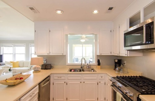Ocean views across from the beach access! Spending the day at the beach was never easier; easy to set up a tent and bring coolers & chairs. Bring your favorite book and never leave! Retreat back to the spacious house to start your seafood dinner and drinks in a well-equipped chef's kitchen with new appliances and gas stove. Dine outdoors with ocean views & sea breezes in the screened-in porch with expandable pottery barn table, or air conditioned indoors (new HVAC unit installed 8/25) on a big farm table.