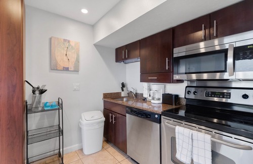 Resort Features: On-site Office, Heated Swimming Pool, Private Beach Access, Wireless Internet Access, Complimentary Chaise Lounge Chairs and Umbrellas, Fully Equipped Kitchens or Kitchenettes, Picnic Area, Private Patio or Balcony (2 bdrms only), Designer Decorated Units, Complimentary Parking, Community Laundry Facilities (private washer/dryer available in select units), Outdoor Shower, Various Views