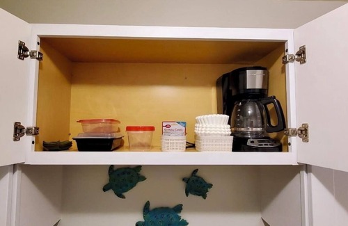 LOCATION! This Petite Sandcastle is only ONE block to the Boardwalk and Beach beyond! Your location is on the 2nd floor of a 2 floor condominium complex, on the corner of 9th and Pacific, backing right up to Atlantic Avenue! Rudee Inlet, Grommet’s Park, restaurants, shops and even the amusement park are all either around the corner, or just a very short walk away! The Front door has a coded lock for easy self check-in, and a key free stay! A well equipped full sized kitchen, including a dishwasher and lots of little kitchen extras, makes cooking meals welcoming and user friendly! Dishwasher pods, liquid dish & hand soap, kitchen towels, and paper products, as well as Keurig w/coffee pods,creamer & sugar are all provided. (A drip coffee maker is in the cupboard for those bringing their own grounds to make full pots of coffee!) A Large 50” mounted Roku Flat Screen TV is in living room & a smaller flat screen Roku TV is in the Queen Bedroom, both also have cable and HBO. Lots of Fluffy bath towels, shampoo, conditioner & body wash provided, and beds will be made and waiting for your arrival! (There is a queen bed in the one bedroom, a double and a single bed are in the second bedroom.) A convenient coin laundry is on the 1st floor of the complex, and one assigned parking space in the complex parking lot included. ( A parking pass to the 9th Street Garage across the street is available for a second car for a small fee .)