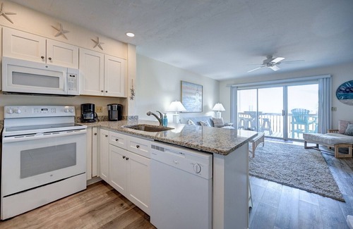 Light and airy in sandy and soft sunrise hues throughout, The Surf Condo in the heart of Surf City makes everything easy. From a one mile walk down the sand to bars, restaurants and shops, to being only a one minute walk to the beach, relaxation is yours! An entire floor to ceiling window wall illuminates the comfy living spaces, and the pristine white kitchen invites you to make yourself at home.