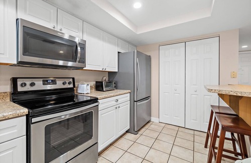Located in beautiful Indian Harbour Beach, Florida in central Brevard County, we offer guests a relaxing stay. All our units directly face the ocean and provide a beautiful ocean view! Beautiful updated two-bedroom two bath condo located on the 4th floor. Master bedroom has king-size bed and guest bedroom has queen size bed and twin bed. The living room has a pull-out queen sleeper. Smart TV located in living room and TVs in both bedrooms. TV Content in each room is supplied by Spectrum and complimentary movie channels are provided. Balcony is located off of Master bedroom and Living room.The kitchen is fully stocked with everything you would expect. Refrigerator, dishwasher, microwave, stove, coffee pot, blender, toaster oven etc. The laundry room has a large capacity washer and dryer. There is also a heated swimming pool, shuffleboard courts, outdoor gas grill, and a car wash area.