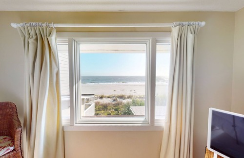 Oceanfront two Bedroom Wild Dunes Condo. Top Level with great views from living area, Deck & Master Bedroom! Standard furnishings, Tile Floors, three TVs with Roku and local channels, covered porch with direct beach access. No Smoking. No pets. Linens included.