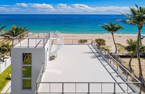 With large, floor-to-ceiling panoramic sliding glass doors in the living room and master bedroom, the intimacy of the ocean is unsurpassed. The expansive, beachfront pool deck is home to an idyllic pool and is the perfect oasis to luxuriate in the South Florida sunshine and listen to the rhythmic sounds of the waves. Step out onto the sprawling third-floor rooftop terrace, with an elevated observation deck, to further bask in the gorgeous 360-degree views of the Atlantic Ocean to the east and the Fort Lauderdale cityscape to the west. Enjoy the lush landscaping in the privacy of this gated home. If you’re looking for an amazing getaway with privacy you’ve found it.