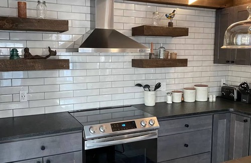 Living room opens to deck overlooking the harbor. One master bedroom with a king size bed and private full bathroom. One full guest bathroom. Large loft with two additional full size beds and play/work space. (ladder to loft and low ceiling height may not be ideal for all guests). Central AC/Heat, heated bathroom floors. All new appliances, furniture, fixtures, etc.