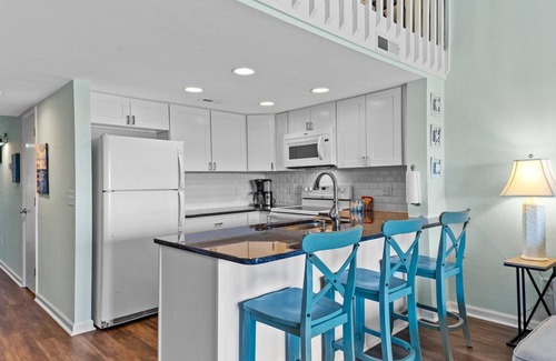 Welcome to our "OceanScape" oasis on the 3rd floor of Surf Condos! Start your day with a cup of coffee on the large, private balcony, where you may spot dolphins in the distance. Take a dip in the private pool or enjoy a leisurely stroll down the dedicated walkway to the beach. OceanScape is just one mile from Surf City's vibrant heart, offering a variety of activities and dining options. Our gated, family-friendly community provides a tranquil setting for your perfect beach getaway! Book Soon!