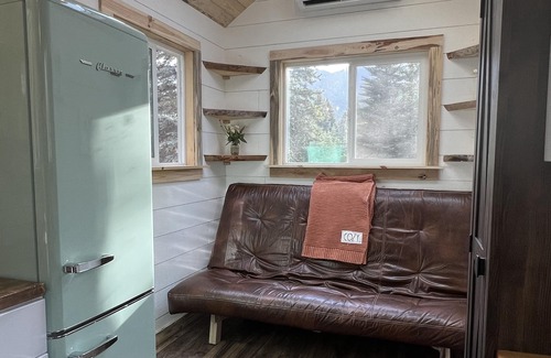 Welcome to THE ASPEN, a beautiful FULLY OFF GRID custom tiny house at Vallecito Lake, built by Korallus Tiny Homes with no detail left behind. Here you'll find A/C and HEAT from a mini split, a full kitchen that includes a farmhouse sink and stunning retro refrigerator, full bathroom, washer/dryer, a queen bed in the loft and a wonderful futon that makes a comfy queen bed! We can't wait to host you !!!