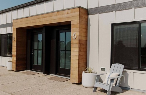 Brand new villas feature expansive ceilings and a comfortable, relaxed summer vibe. Decorated with West Elm furnishings and historic Okoboji photos. Fully equipped kitchen for all your summer needs, a large island for dinners and playing cards. Large smart TVs in each room, soundbar connection, and Wi-Fi throughout. Large living room, dining, and kitchen with new modern appliances. Living room has a leather futon sofa that sleeps two. Two bedrooms, each featuring king size memory foam beds. The second bedroom includes cozy bunk beds. Each bedroom has its own en-suite baths with tiled walk-in showers and white quartz countertops.