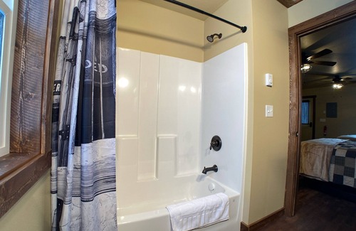 Our jail is a brand new 416 sq. ft. studio cabin with two queen beds and a bathroom. Need another cabin to accommodate your gang? Click on our profile to check out the other great listings in our Old West Town!