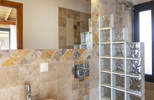 Return to nature when you holiday in Oleander Cottage, at the unique concept Yenice Vadi, in the southern province of Mugla, near the Mediterranean coast. Enjoy traditional Turkish life in this beautiful two bedroom villa, with panoramic views of the valley and village below. The cottage can comfortably accommodate up to five guests and would be ideal for a small family or group of friends’ sharing. Oleander Cottage is built out of natural wood and local stone, with classic whitewashed walls, and beamed ceilings. The property is set in its own garden with a private swimming pool, surrounded by lush green lawns, and indigenous trees and shrubs. Villa Oleander has dedicated parking spaces and complimentary air conditioning and Wi-Fi. The interiors are stylish yet homely, nature has been brought indoors, handcrafted furniture is made from local wood, and the décor is warm and welcoming, using a colour palette of crisp clean white and shades of sea blues. The ambiance is one of light and airy easy living, with floor to ceiling sliding doors that open onto the terrace. The seating area has a baby blue L-shaped sofa, that can be converted into a bed to sleep one guest, an enclosed wood burning fire, and a flat screen smart television. The adjacent kitchen is fully equipped with everything you will need to cater for your holiday. There are two beautifully-appointed bedrooms either end of the property, one with a king size bed, and ensuite bathroom with walk-in shower, and the other with twin beds, and a separate bathroom. The terrace has a covered veranda for shade, and is home to easy chairs and swing seats. The step-entry swimming pool is surrounded by wooden sun loungers and carved stone seats. Enjoy eating alfresco at the dining set, where you can feast from the fruit and vegetables you have foraged from the estate’s gardens and greenhouses.