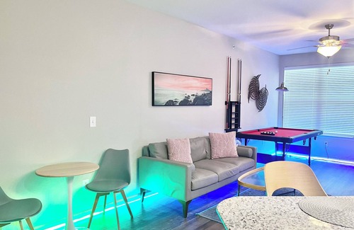 Have fun with the family at this stylish one bedroom game pad. Comfy memory foam queen bed, with twin air mattress for extra sleeping. Enjoy a large pool table, retro PacMan arcade and optional LED wall lights to change to your favorite color of choice. Very close to interstate 65 & 465. Lots of shopping and restaurants nearby.