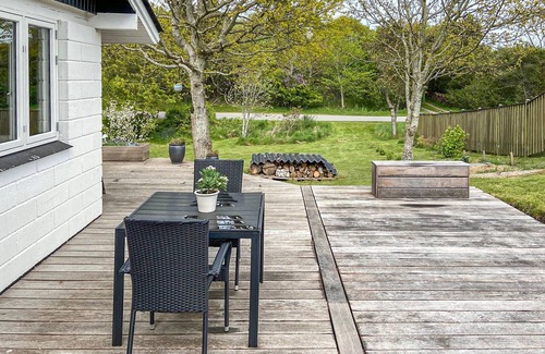 On the small, cozy island of Venø you will find this beautiful vacation home. The house is located on a large plot of land. To one side the house offers a large terrace overlooking the open garden areas have, while on the other side is a small cozy alcove where you can sit quite undisturbed.