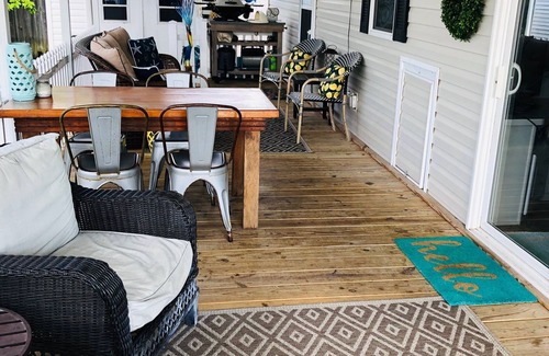 In a small, gated RV community one short block from the beach you will have access to the swimming pool, lounge chairs, and pool house. This sweet 2 bedroom 1.5 bath with a additional bedroom off the porch for added space is perfect for a family getaway. The porch has a tv, outdoor seating, outdoor dining and a Weber grill for cookouts. Also a handy shower out back to rinse off your sandy toes. Pompano Joe’s is just one short block away.