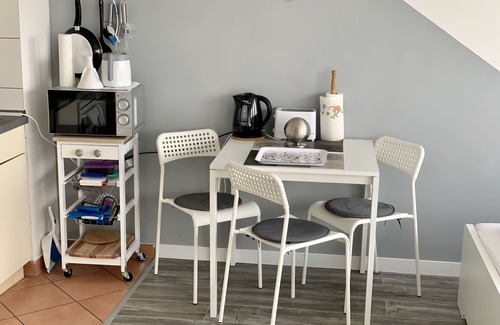The kitchen is equipped with an oven and a refrigerator, as well as an electric kettle, a microwave, and cookware. Enjoy the WiFi and TV. Bathroom amenities include a hair dryer, towels, and toilet paper. And you won't have to pack extra clothes, because you'll also have access to laundry facilities. Other amenities at this 1-bedroom, 1-bathroom rental include bed sheets, an ironing board, heating, and a dining table.
