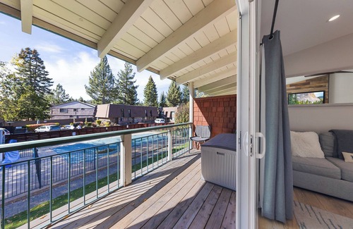Step outside onto the private balcony, where you can savor your morning coffee while relishing the mesmerizing views of the pool and the shimmering waters of Lake Tahoe. The balcony also serves as the perfect spot for an evening cocktail as you watch the sun dip below the horizon, painting the sky with stunning hues.