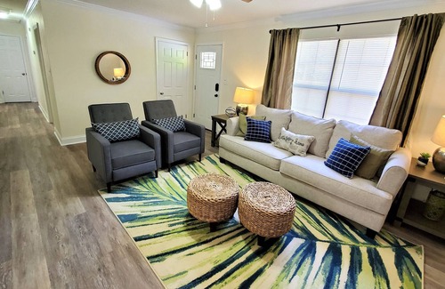 Relax and unwind in this renovated home that will sleep 6 comfortably with three bedrooms and two baths. This home comes with a fully equipped kitchen and features a large deck for lazy afternoons. We are minutes from downtown Thomasville, with fabulous restaurants and boutique shopping available. We offer wifi, and driveway parking. Whether traveling for a wedding, family gathering, or girls getaway this is the perfect place.