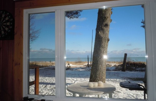 Also a great escape in the winter to a cozy cottage with a fireplace, a table for jigsaw puzzling, or a nice couch for reading (or snoozing) - both with great views of Lake Huron! Adventure outside for walks along the frozen beach with ice flows extending varying distances into the lake. Nearby you can also find several groomed X-country ski trails. Return to the cottage to warm up by a fire with hot chocolate or some soup and then enjoy games with the family or movies on the big screen with a LCD projector.