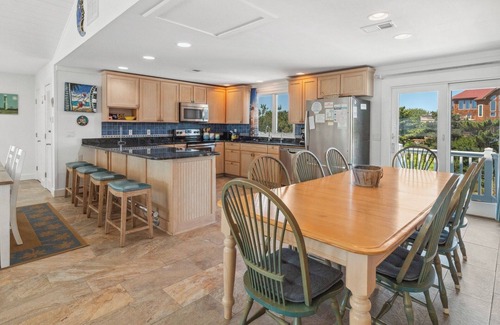The top level is a true coastal dream, thanks to beautiful touches of sea-glass blue décor and a suite of amenities that will keep everyone smiling. There's a large living area with a 60" flat screen TV, DVD, VCR & surround sound, a sunny front deck & top-level observation deck, a dining area for 8 and a 2nd dining area for 4, a well-stocked kitchen, and a bathroom with shower and built-in shower seat. Best of all, the top level is framed by refreshing ocean views, making it easy to enjoy those salt breezes at any time.