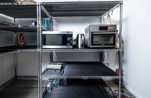 Adjacent half bathroom for overnight guests or flexible sleeping setups