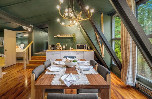 Please note: This property includes two separate dwellings, and some amenities are SHARED with the other cabin. Enjoy the hot tub (SHARED) and sauna (SHARED) for ultimate relaxation after a day on the slopes or exploring the trails. Outdoor gathering spaces include your own fire pit (PRIVATE) and BBQ (PRIVATE), plus picnic tables (SHARED) set aglow by bistro lighting—perfect for cookouts, s’mores, and evening hangouts under the stars. Ample parking and electric vehicle charging (SHARED) make arrivals easy for groups of all sizes.