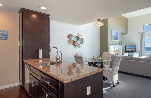 The gorgeously furnished 1 bedroom condo comfortably sleeps 2 adults. The master bedroom features direct access to the ocean side deck and an extremely comfortable queen-size bed. The bathroom has been beautifully remodeled with touchless faucet and walk in shower. Enjoy watching the ocean waves out the living room window or cozy up on the couch to enjoy a movie or show on the television in the living room with cable and DVD player available for your use.