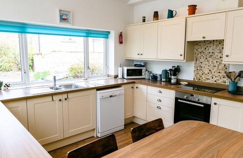 Amenities: Electric heating with open fire. Electric oven, grill and hob, microwave, fridge/freezer, washing machine, dishwasher. TV, selection of books, WiFi. Fuel and power inc. in rent. Bed linen and towels inc. in rent. Travel cot and highchair available. Off-road parking for 1 car. Gardens, patio area, patio furniture. Two well-behaved dogs welcome. Sorry, no smoking. Shop 0.2 miles, pub 0.1 miles, beach 0.8 miles