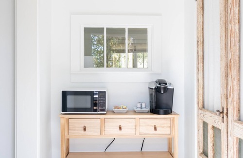 The small, but well stocked kitchen, is perfect when you are not strolling downtown to enjoy all of Fairhope's amazing restaurants!