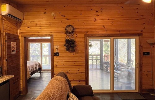 Stay comfortably in Hot Springs at this 1-bedroom cabin. Nestled in nature, this brilliant retreat features a cozy queen bed, a relaxing jetted bathtub, and all the essentials for a fabulous stay. Whether you're unwinding in the serene surroundings from your screened in porch or exploring the nearby attractions, this cabin is the perfect home base for your getaway. Make it one for the books with a stay at our place.