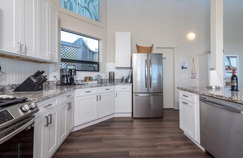 The kitchen is fully equipped and well appointed with brand new stainless steel appliances and granite countertops. Whether you enjoy coffee, tea, wine or all of the above...Irish Beach House has something for you. A Cuisinart dual coffee maker and Keurig is provided with coffee and supplies. An instant kettle and tea are also provided. Enjoy a complementary bottle of wine to enjoy while sitting on the deck taking in the amazing views.
