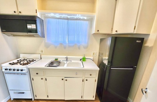 This listing if for Unit 10, located on the second floor of our building; it comes with a private kitchen, bathroom, and patio (all pictured). The kitchen is equipped with a refrigerator, freezer, microwave, and coffee maker! The unit is also equipped with black out curtains, TV, and A/C and heating. The restroom comes with extra beach/pool towels, hair dryer, shampoo, conditioner, and shower gel. The hosts will be on or nearby the property (in another, distanced unit) in case guests need anything like additional linens, pillows, etc. Guests registered to stay in this room will have complete access to our other facilities, including the mineral hot tub, pool, and barbecue facilities.