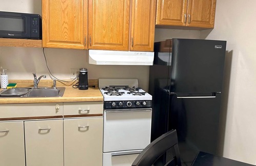 This listing is for Unit 4, located on the ground floor of our building; it comes with a private kitchen, bathroom, and patio (all pictured). The kitchen is equipped with a refrigerator, freezer, microwave, and coffee maker! The unit also has black-out curtains, TV, A/C, and heating. The restroom comes with extra beach/pool towels, hair dryer, shampoo, conditioner, and shower gel. The hosts will be on or nearby the property (in another, distanced unit) in case guests need anything like additional linens, pillows, etc. Guests registered to stay in this room will have complete access to our other facilities, including the mineral hot tub, pool, and barbecue facilities.