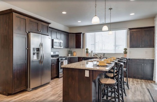 Our fully loaded kitchen is supplied with all the amenities and spices to prepare and enjoy meals at home. Basic cookware, serve ware, glassware, cutlery, utensils, paper towels, dish soap and dishwasher detergent are all provided. With the outdoor grill and patio fire pit table, you can enjoy a delicious barbecue while making s’mores (skewers included) and soaking in your own private hot tub!! While having fun on your own private patio you can watch the kids play spike ball or tag in the large grassy area just steps from the patio. In our kitchen we also supply an electric griddle, Belgium waffle iron, mini wafer maker, hot sandwich maker, crock pot, rice cooker, mixing bowls, coffee maker and more.