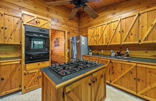 Challenge a friend to a game of pool, then spend some quality time with a loved one or a good book in the hot tub. Use one of the two full kitchens to cook up tonight's masterpiece with some fresh fish caught this afternoon down at the creek. Later, stargaze next to a roaring fire at the firepit. Relax on one of the two screened-in porches and listen to the water go down the creek. Feel away from it all but only minutes to Mercier Orchards, downtown Blue Ridge or McCaysville! Walk-in to an open floor plan with the main bedroom suite to the right and two bedrooms and a bathroom to the left. The living, dining and kitchen area are spacious with a fireplace as the focal point. There is a screened patio off this area with amazing views of the creek. The grill is located on the deck right outside the screened patio.