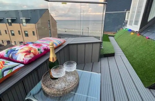 - Spacious area with modern features and stunning views across Whitley Bay Beach from 2nd-floor balcony.