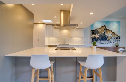 Southern California awaits at this Palm Desert 2-bedroom, 2-bath vacation rental! Guests are sure to adore the open floor plan brimming with modern minimalism that showcases a 36-foot-long wall of sliding glass doors to the patio. Lounge poolside after boutique shopping along El Paseo just a 5-minute walk away or stick close to home for a movie night on one of the 4K Smart TVs. You'll be within 7 miles of 12 premier country clubs and a short walk from the exhibits at the Palm Springs Art Museum!