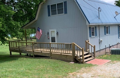 Patriots Retreat is a quiet home designed to inspire you. The home is designed with American themes, in a very comfortable setting. The home has a large deck for outdoor eating and the stars shine very bright at night. The home is in a very peaceful setting and all of the interior is inspiring, positive and patriotic. We have been Super Hosts for over 6 years with 2 other Cabins: Sunrise Mtn Cabin & Sunrise Mtn Treehouse Cabin. Super view of the mountains which you will have from all of our cabin properties. Visit and enjoy.