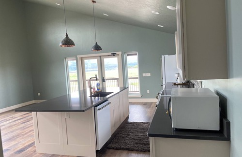Get ready to relax in this brand new 1-bedroom apartment in Hamilton. The cozy space features a very comfortable queen bed, a full bathroom and all the amenities of home. The open living plan offers large windows and a deck to view the Bitterroot Mountains. We are on the end of a road and it is VERY quiet. Listen to the sounds of the creek across the way or watch the ospreys teach their babies to fly (April - September). We have frequent visits from a large elk herd, deer, sandhill cranes, foxes, bald eagles, golden eagles, badgers, ground squirrels, and bunnies. We’re happy to point you in the direction of lovely local spots.