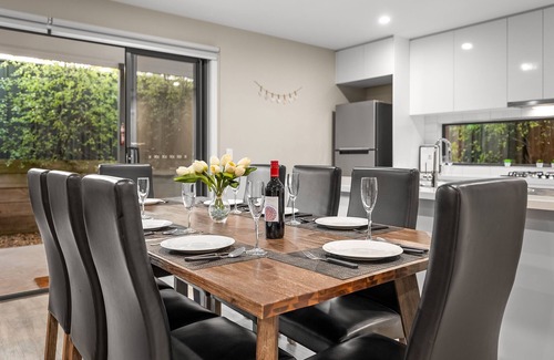 - Open plan modern living and fully stocked kitchen including dishwasher, cook top, oven, microwave, fridge and freezer, toaster, kettle, sandwich press.